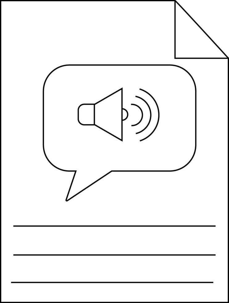 A document with a folded corner displays a speech bubble enclosing a speaker icon above horizontal lines Pro Vector