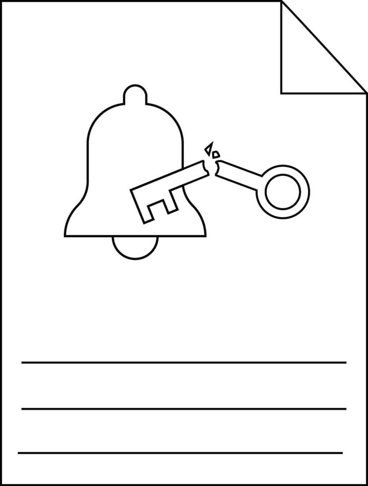 A document displays a bell with a broken key on it along with three lines for writing Pro Vector