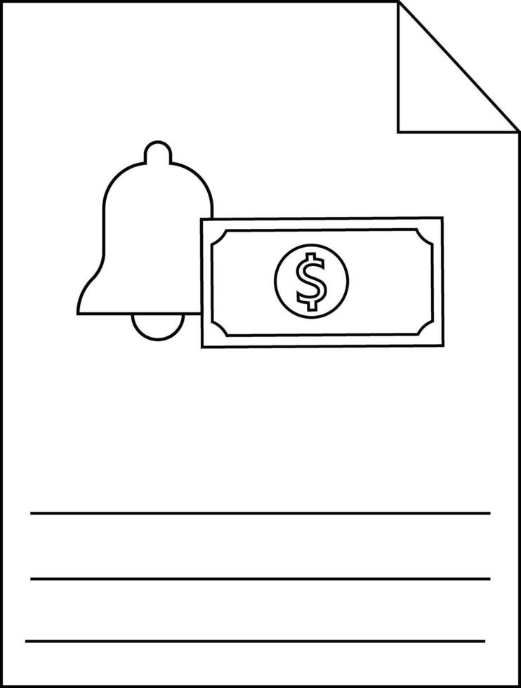 Outline of a document with a bell and dollar bill atop text lines Pro Vector