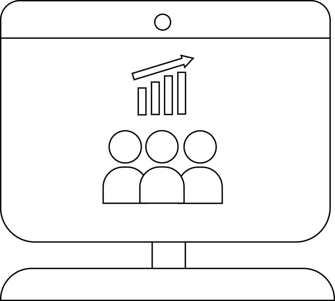 A computer monitor displays a graph with an upward arrow and three stylized figures of people Pro Vector