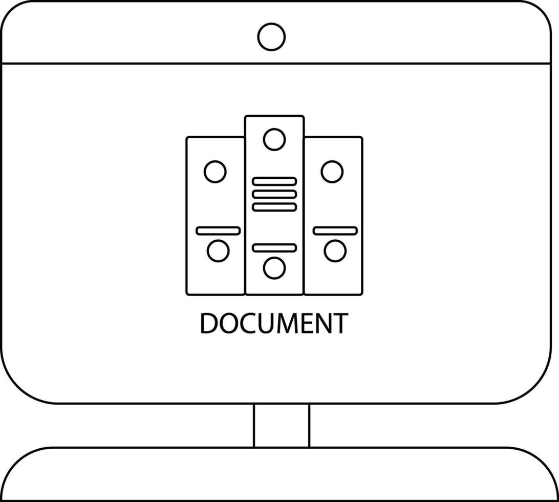 Line drawing computer display with document icon desk stand white background Pro Vector