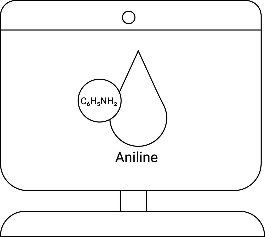 Aniline displayed on a computer screen with its chemical formula shown with a teardrop illustration Pro Vector