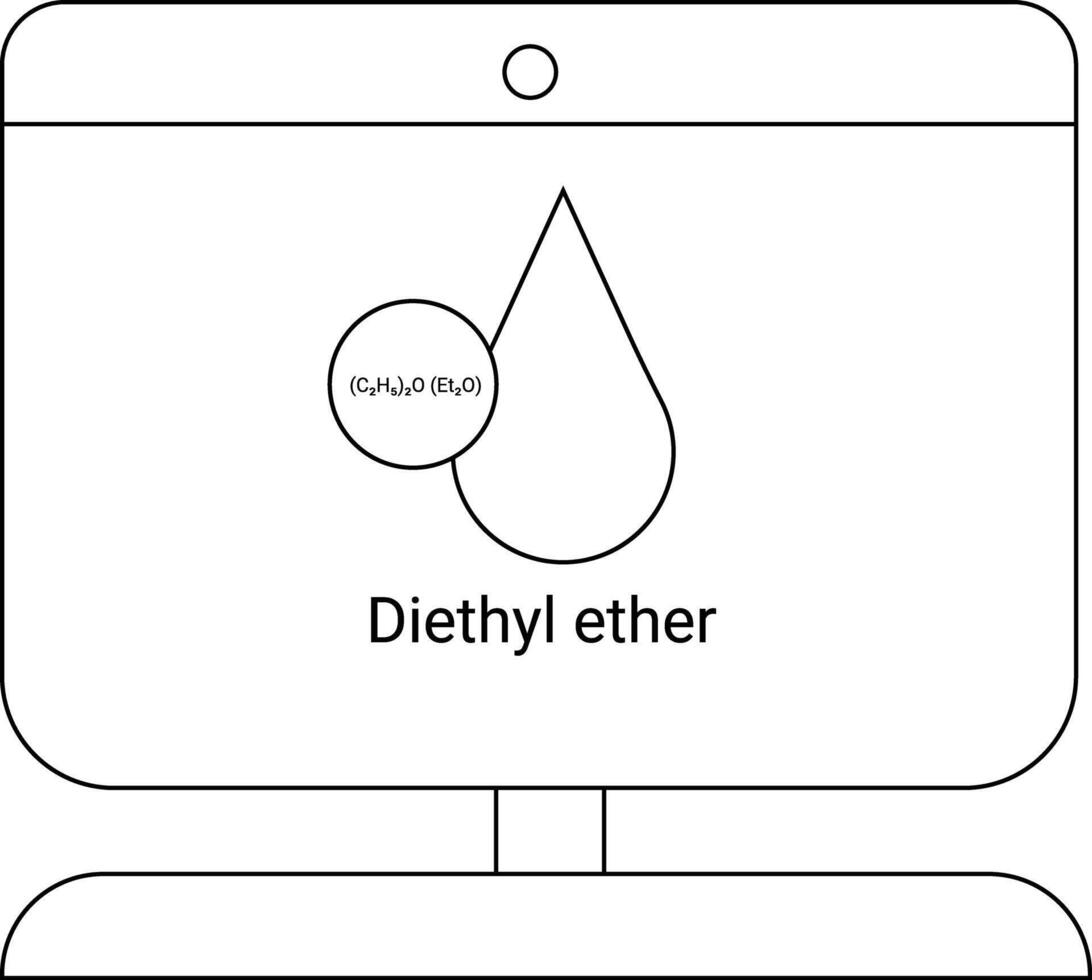 Diethyl ether illustration shows a molecule and a teardrop over the text on a stand Pro Vector