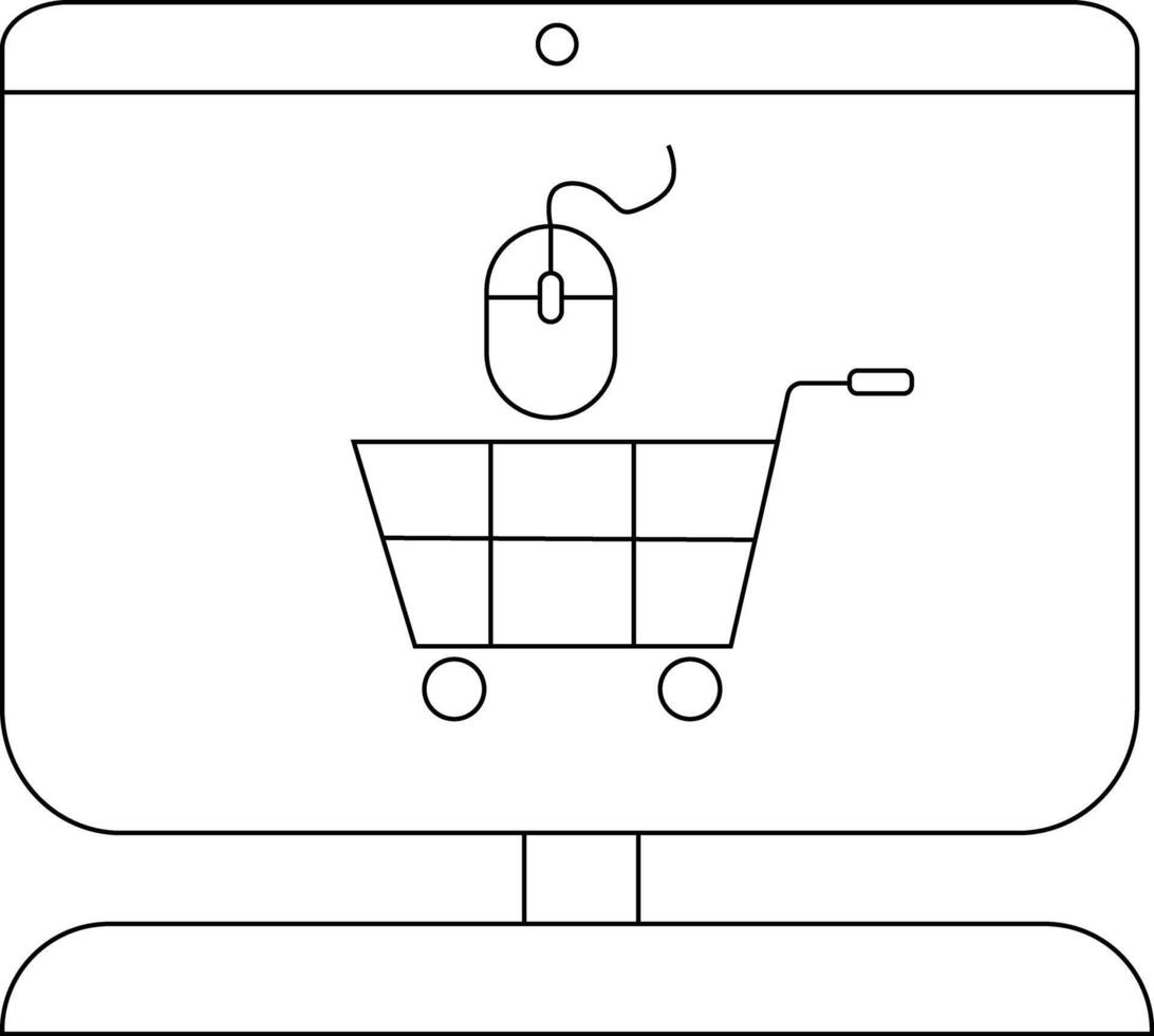 A computer screen shows a mouse above a shopping cart with wheels Pro Vector