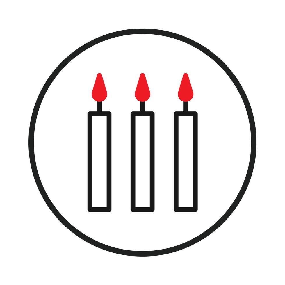 A simple icon of three illuminated candles arranged within a circular frame conveys warmth vector