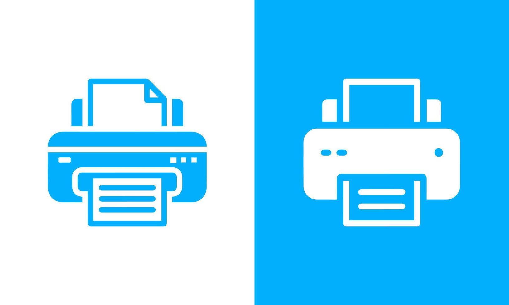 Modern flat icon set of a printer with paper output on a split blue and white background Free Vector