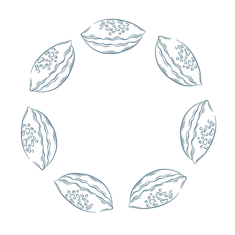 Line art seashell arranged in a circular wreath on a white background. Design with copy space in the center. Pro Vector