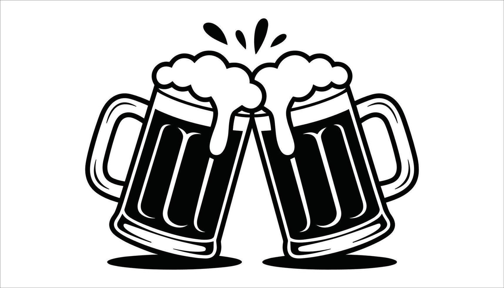 Two frothy beer mugs clinking together in a toast with splashes of foam celebration Pro Vector