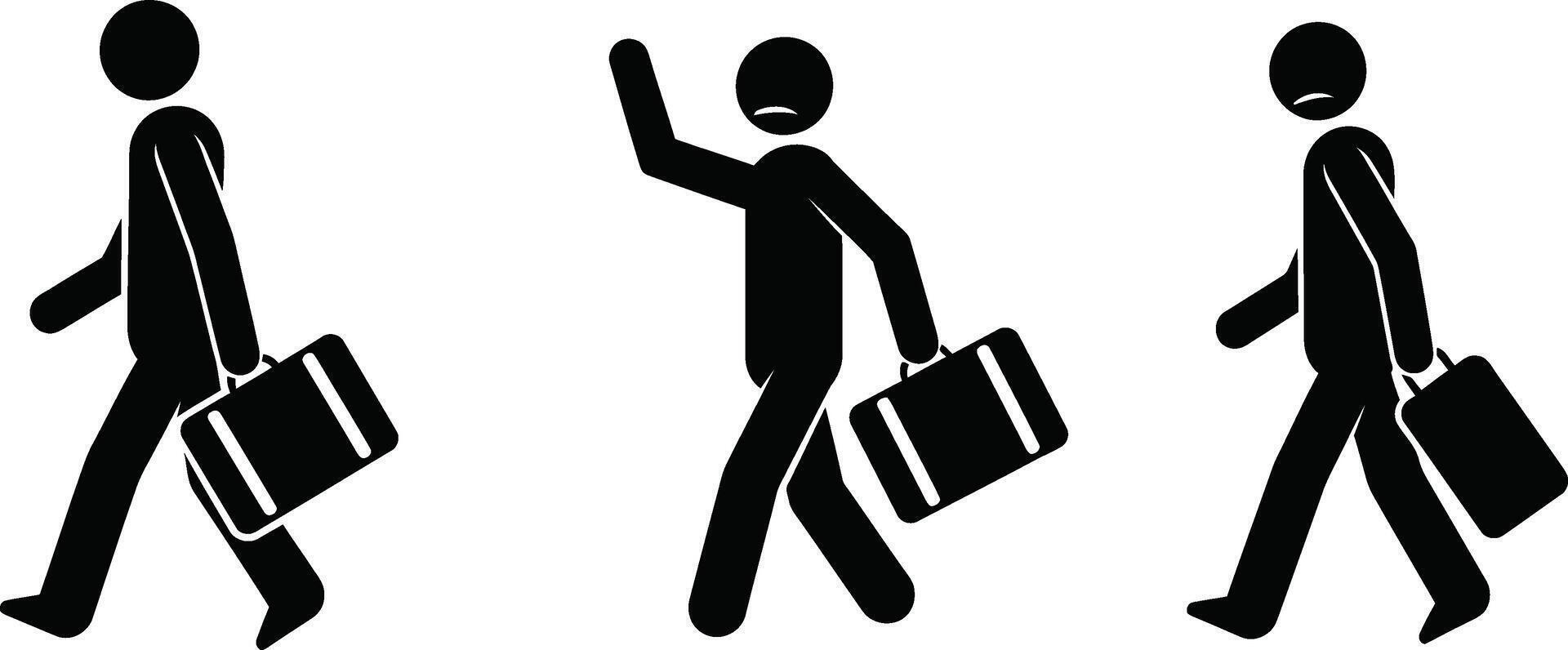 Illustration of three stick figures walking with a briefcase isolated on white background Pro Vector