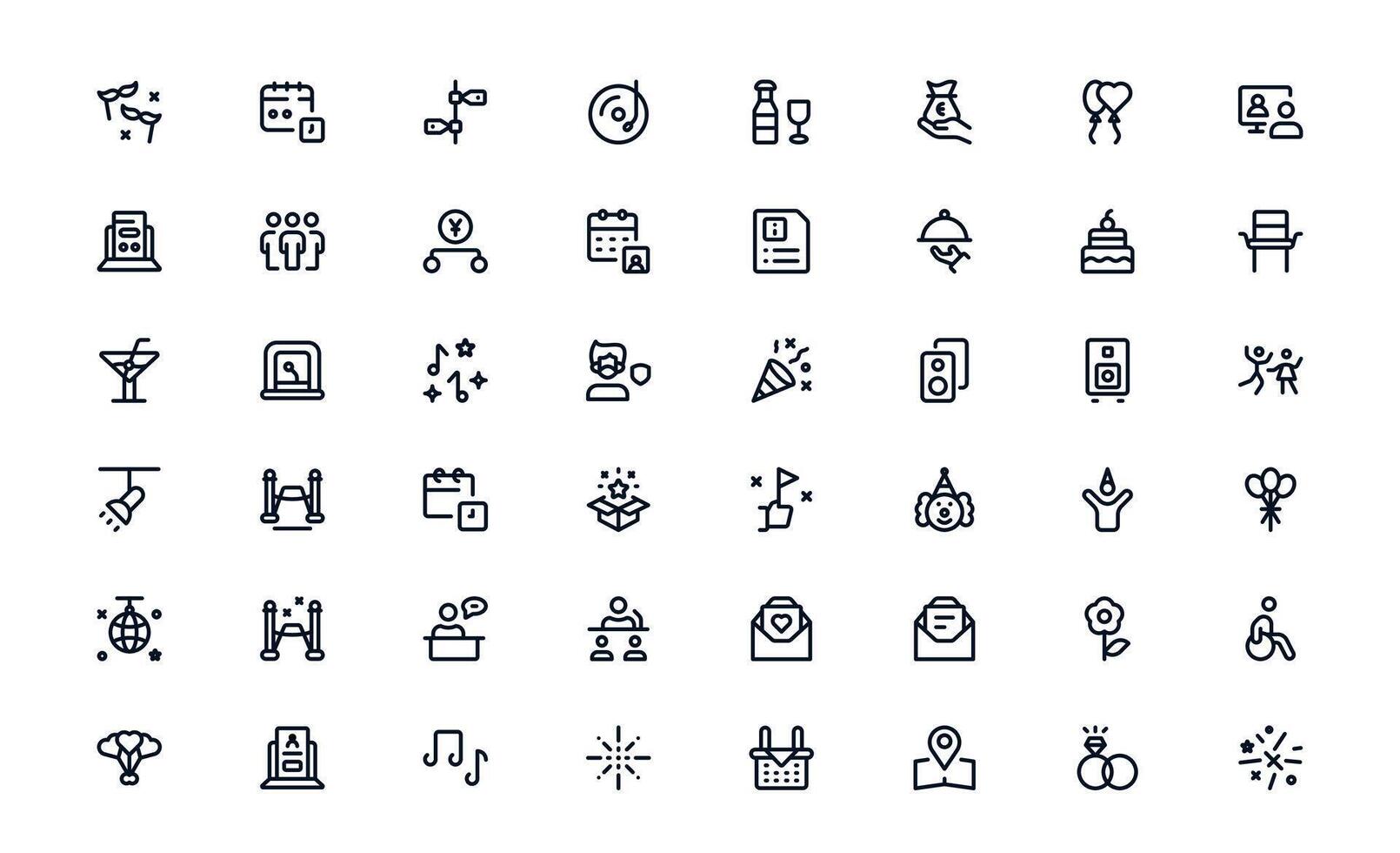 Professional Event Planning Icon Collection presenting Event Organizer Apps, Scheduling Dashboards, and Planning Tools Pro Vector