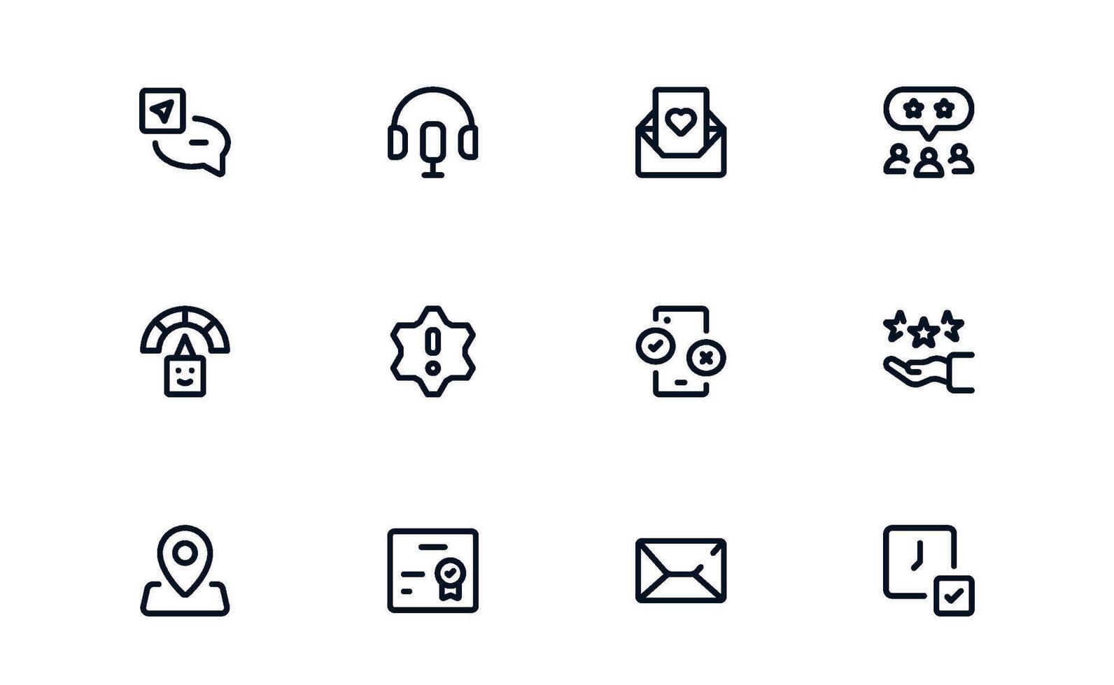Stylish Customer Support Service Icon Library exploring Customer Interaction, Support Apps, and Ticket Management Tools Pro Vector