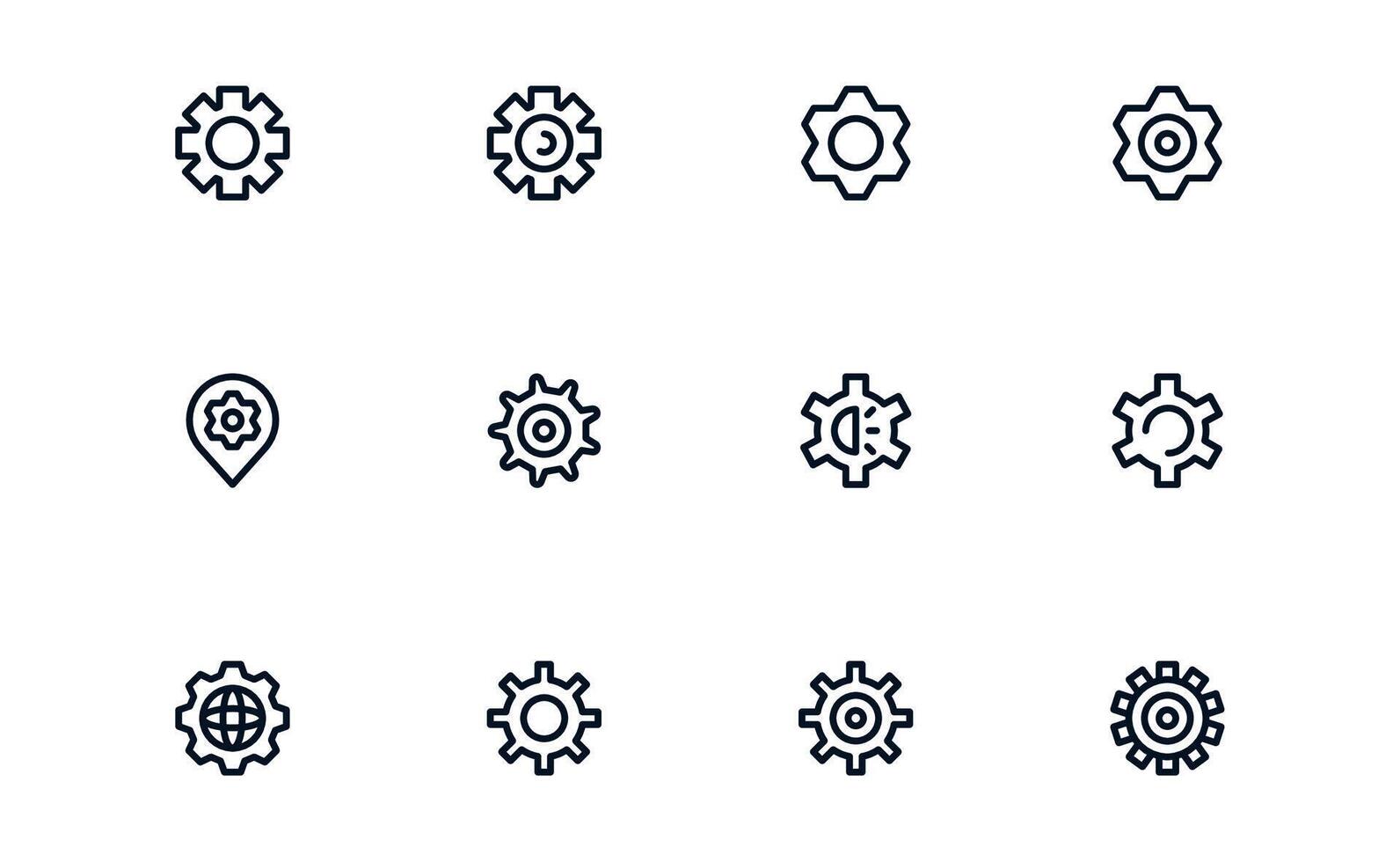 Elegant Settings and Maintenance Icon Bundle demonstrating Configuration Tools, System Apps, and Maintenance Interfaces Pro Vector