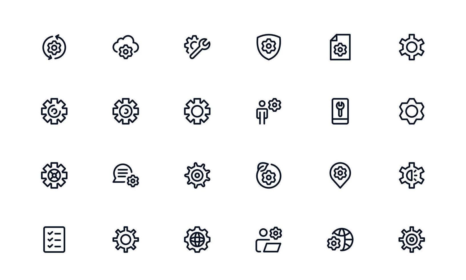 Creative Settings and Maintenance Icon Pack visualizing Maintenance Apps, Settings Dashboards, and System Management Pro Vector