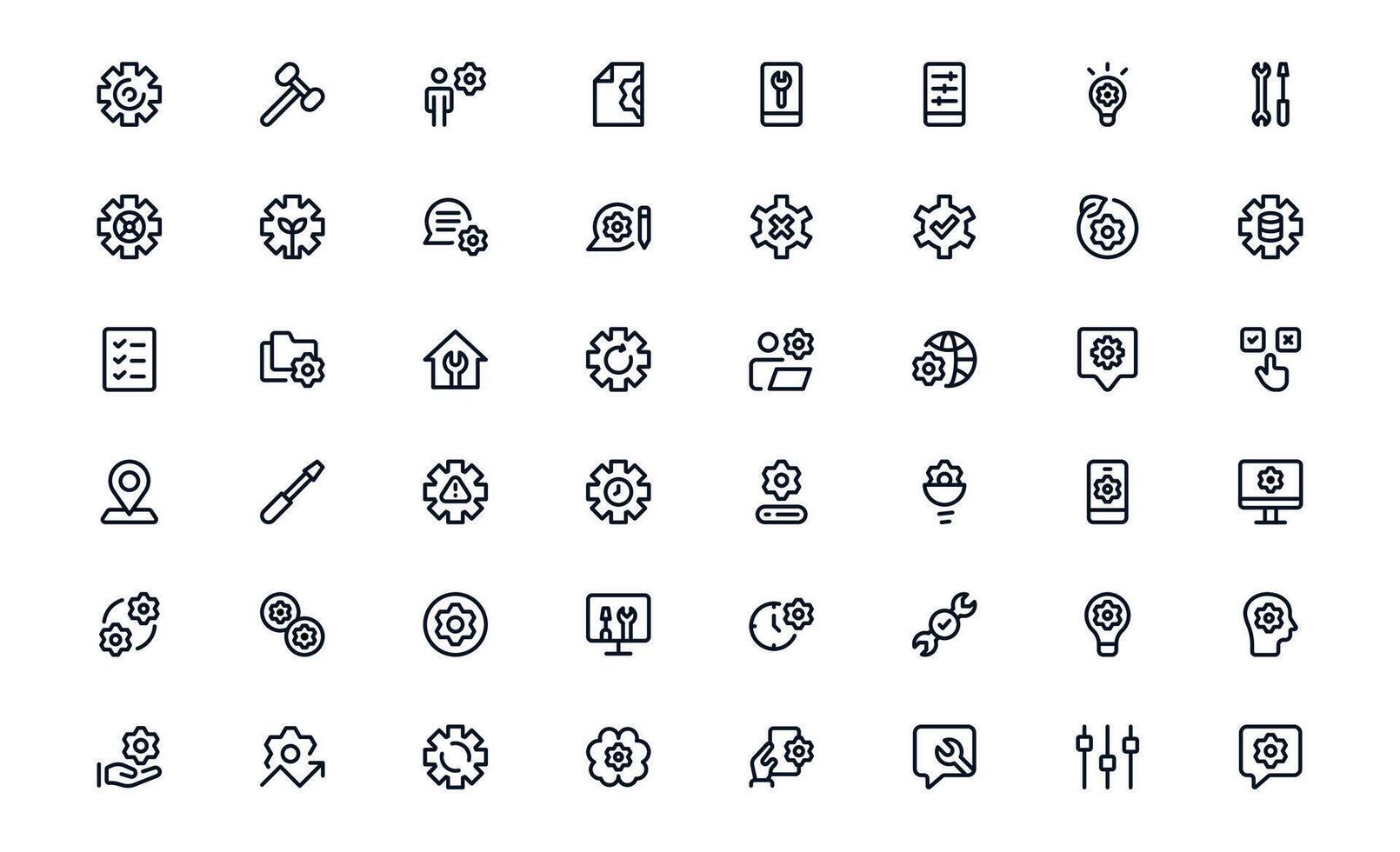 Minimal Settings and Maintenance Icon Pack showing Settings Interfaces, Maintenance Tools, and System Management Pro Vector