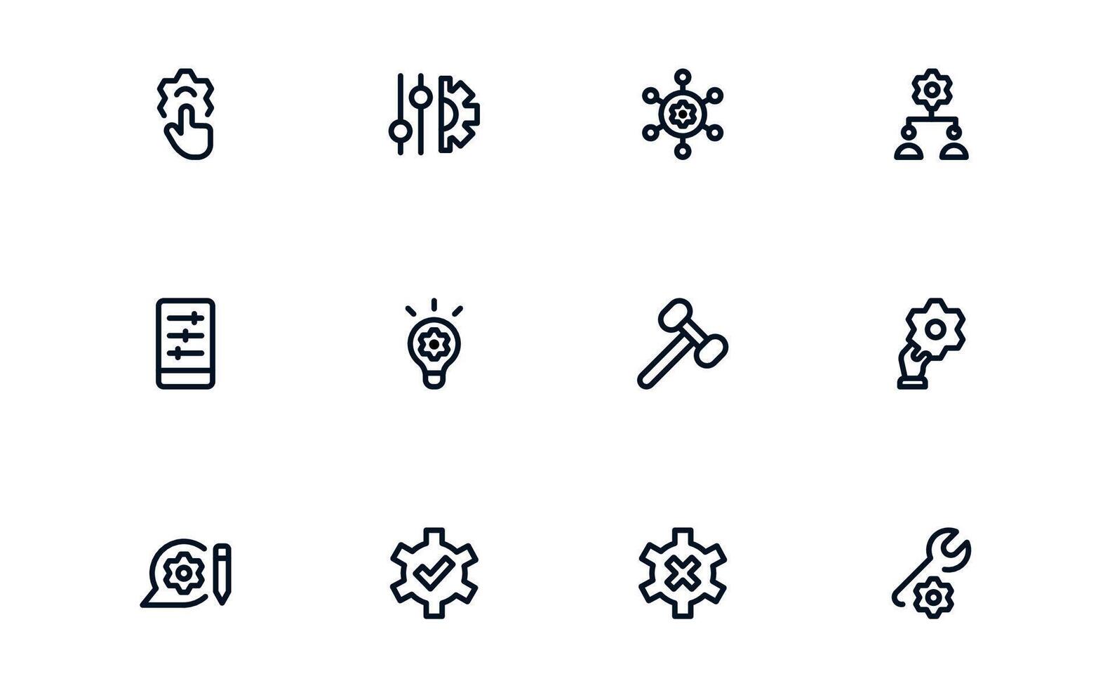 Elegant Settings and Maintenance Icon Library illustrating System Settings, Maintenance Dashboards, and Control Interfaces Pro Vector