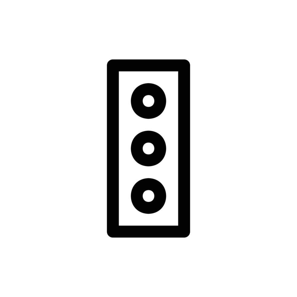 A minimalist icon representing a traffic light with three circular lights stacked vertically within a rectangular frame. Pro Vector