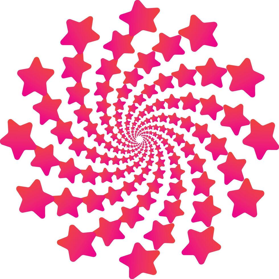 Spiral pattern of pink gradient stars creating a vibrant optical illusion design Pro Vector