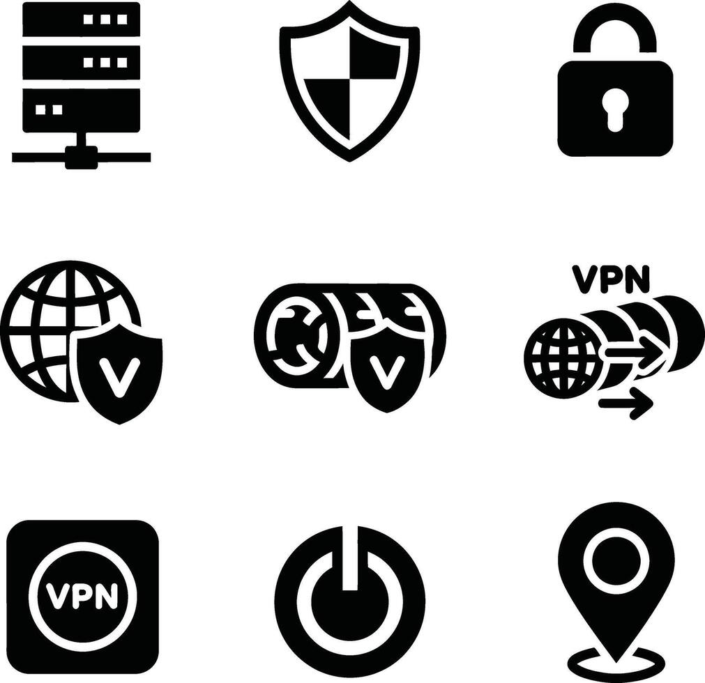 Cybersecurity and vpn icons including server shield lock globe and power button Pro Vector