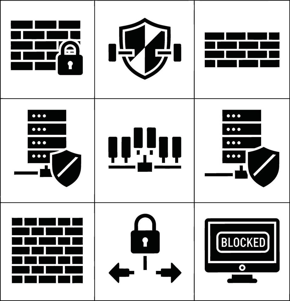 Cybersecurity icons representing firewalls network security and data protection Pro Vector