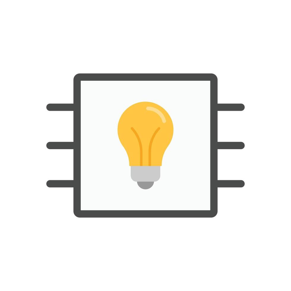 AI spark idea icon showing a neural chip merged with a light bulb, symbolizing creative innovation and artificial intelligence inspiration for modern tech concepts. Pro Vector