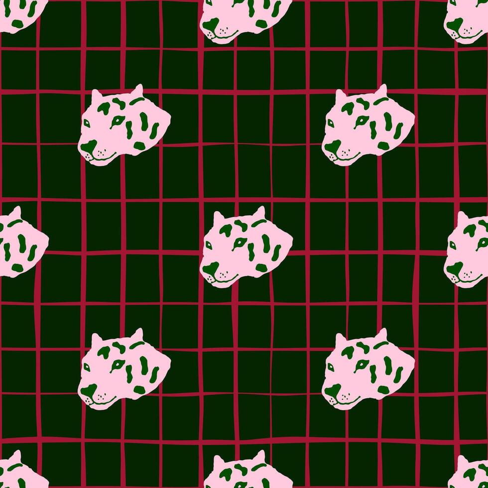 Abstract leopard pattern with pink outlines on dark grid background Pro Vector