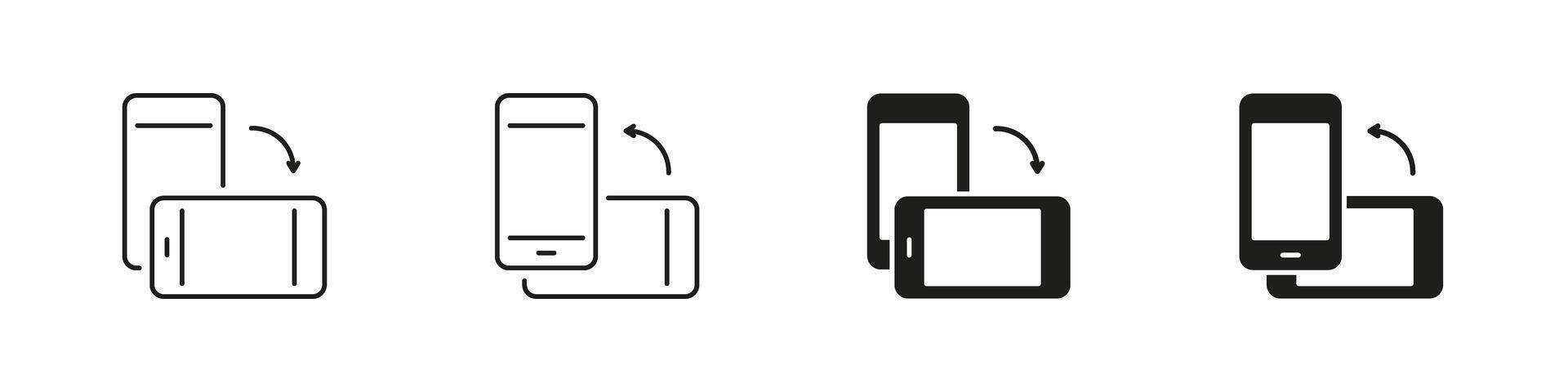 Mobile Device Flip Action Line and Solid Icon Set. Smartphone Screen Rotation With Arrows Indicating Motion, Navigation and Control Symbol Collection. Isolated Illustration Pro Vector