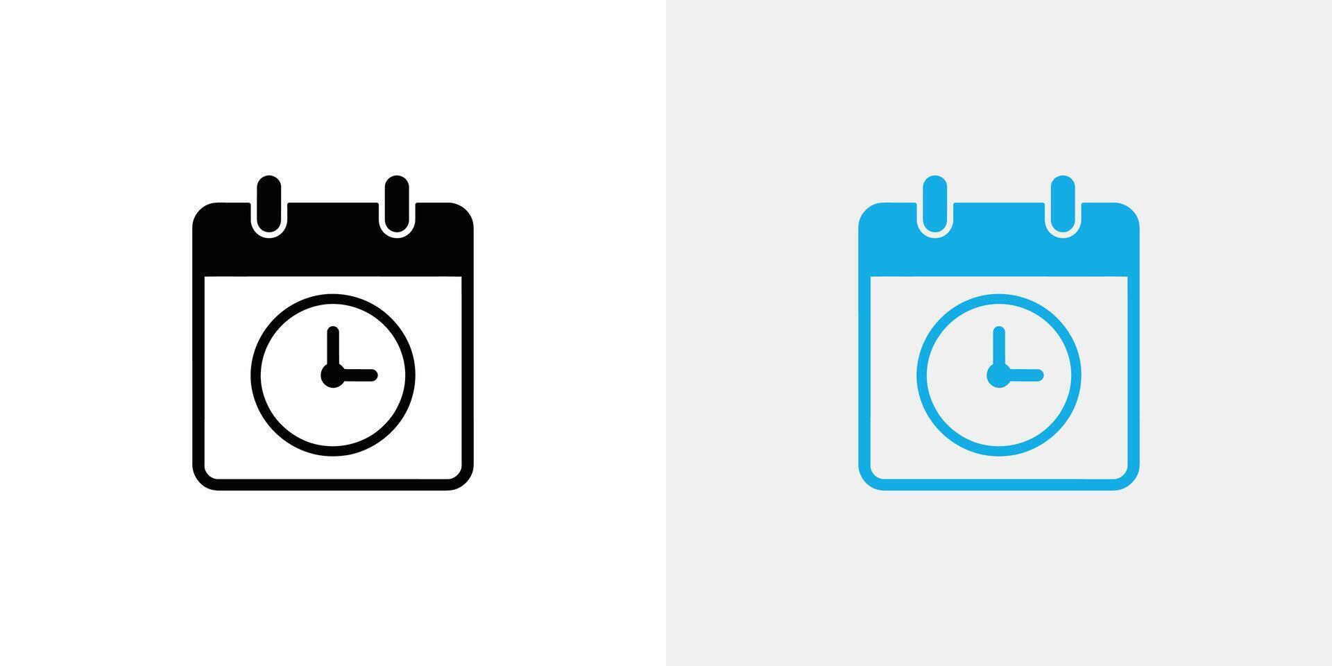 Black and Blue Calendar Icon with Clock on Light Background in Format Pro Vector