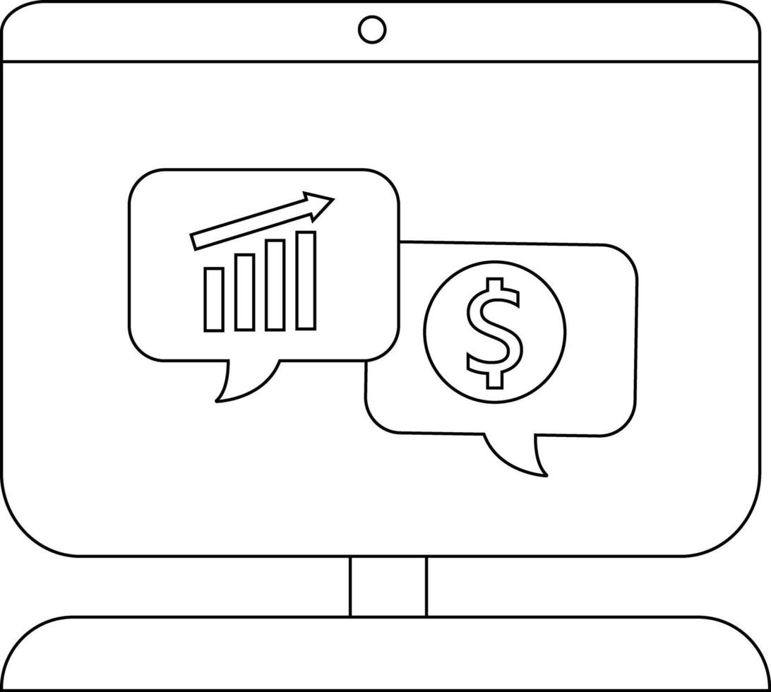 Computer display with speech bubbles one shows a rising bar graph and arrow the other a dollar sign Pro Vector