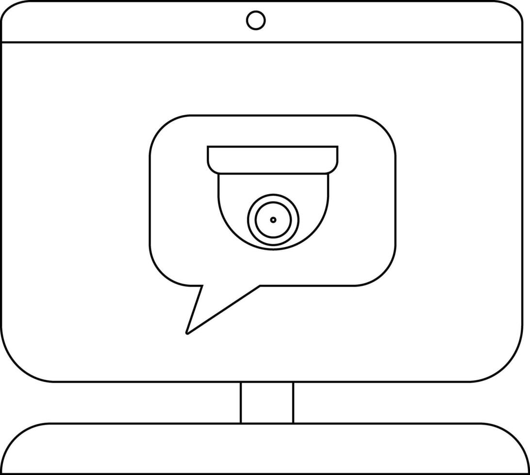 A desktop monitor displays a surveillance camera within a speech bubble Pro Vector