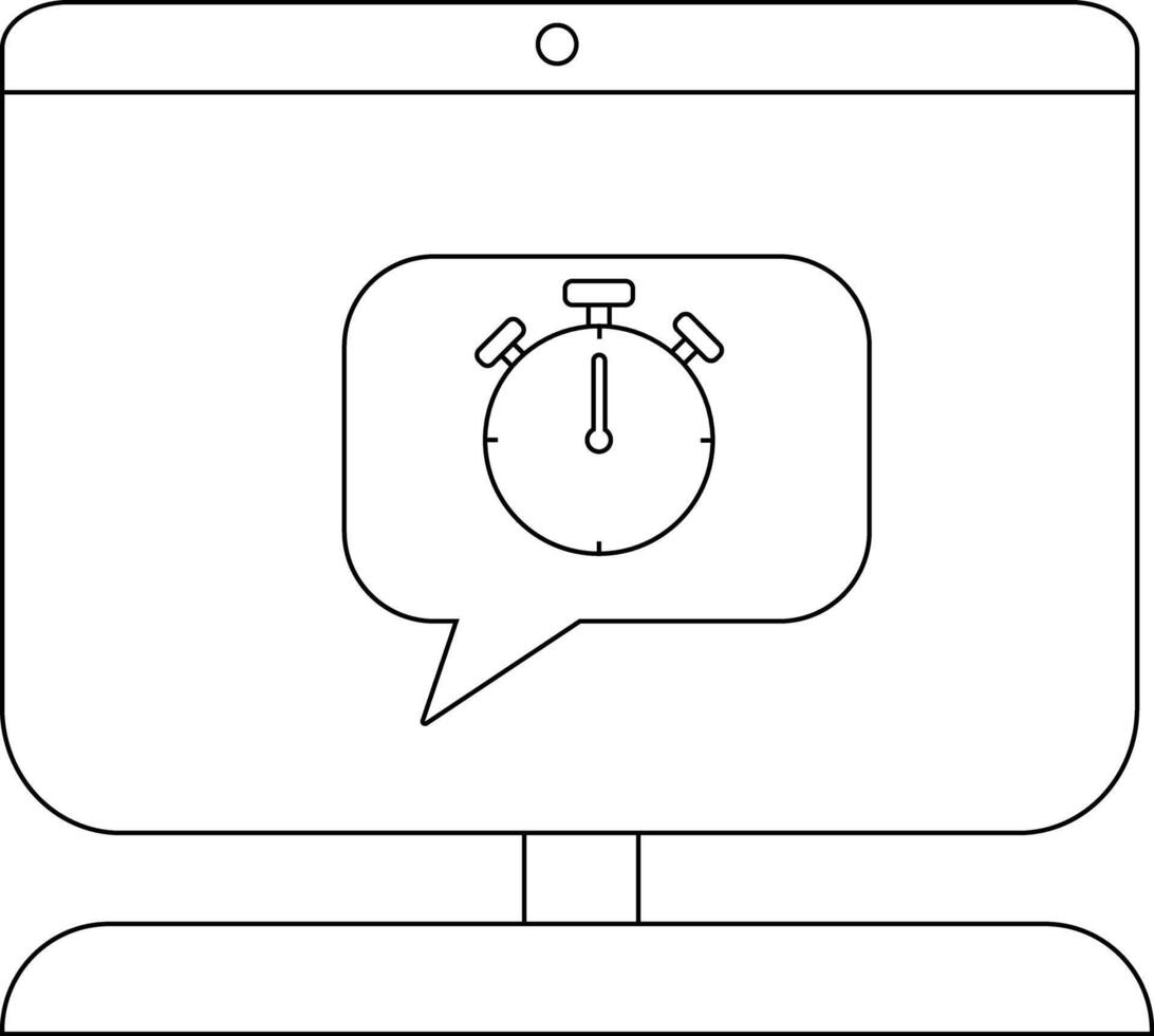 A computer screen displays a stopwatch within a speech bubble Pro Vector