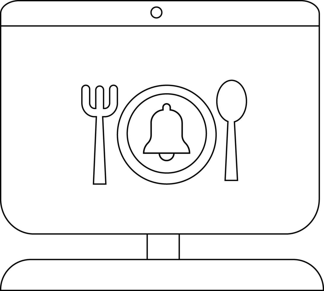 A computer monitor shows a plate with a bell a fork and a spoon on the screen Pro Vector