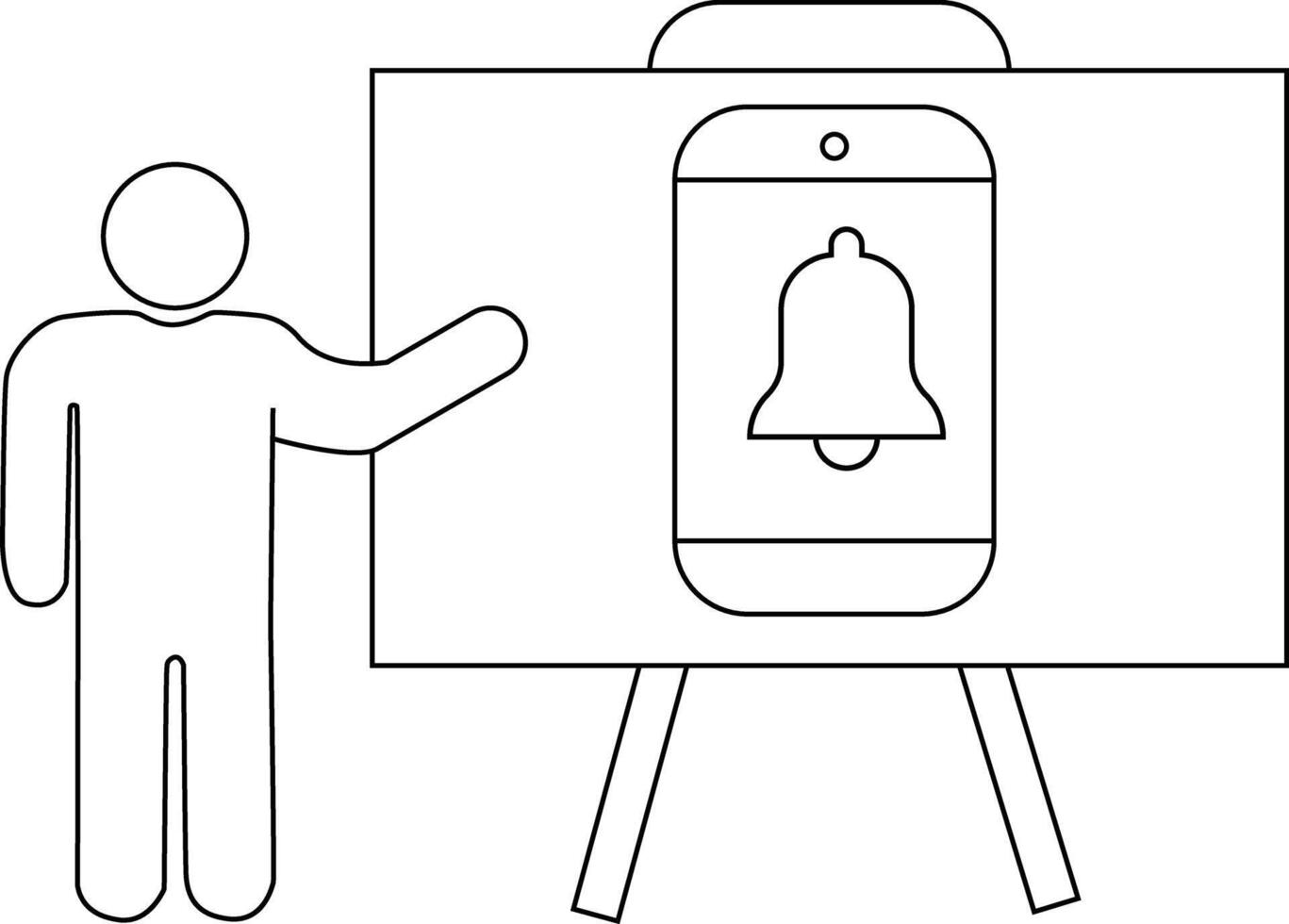 Presentation showing notification on a phone person standing near board Pro Vector
