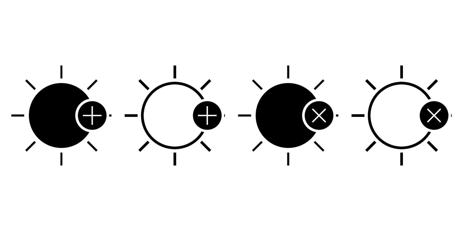 Black and White Icon Set for Brightness Adjustment Increase Decrease On Off Controls Pro Vector