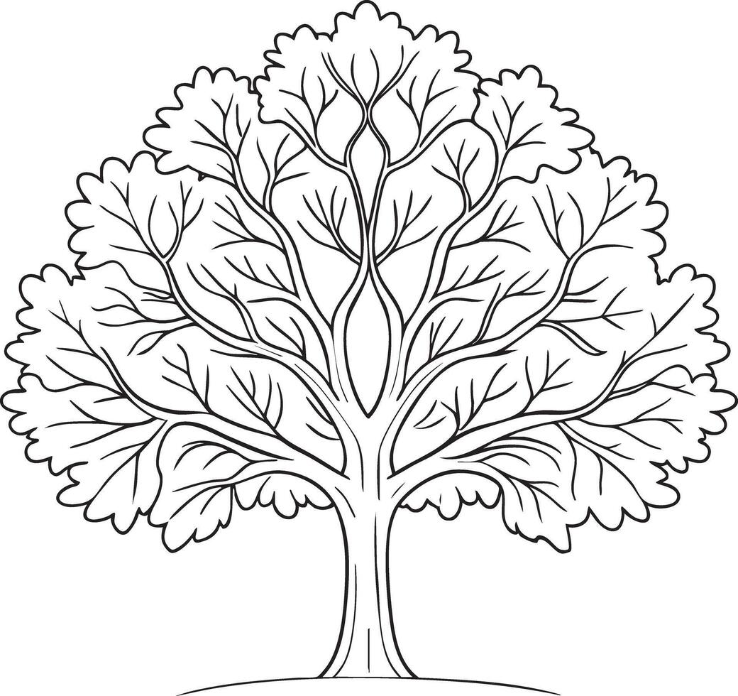 Leafy deciduous tree outline illustration with intricate branches, minimalist nature and botanical line art design Pro Vector