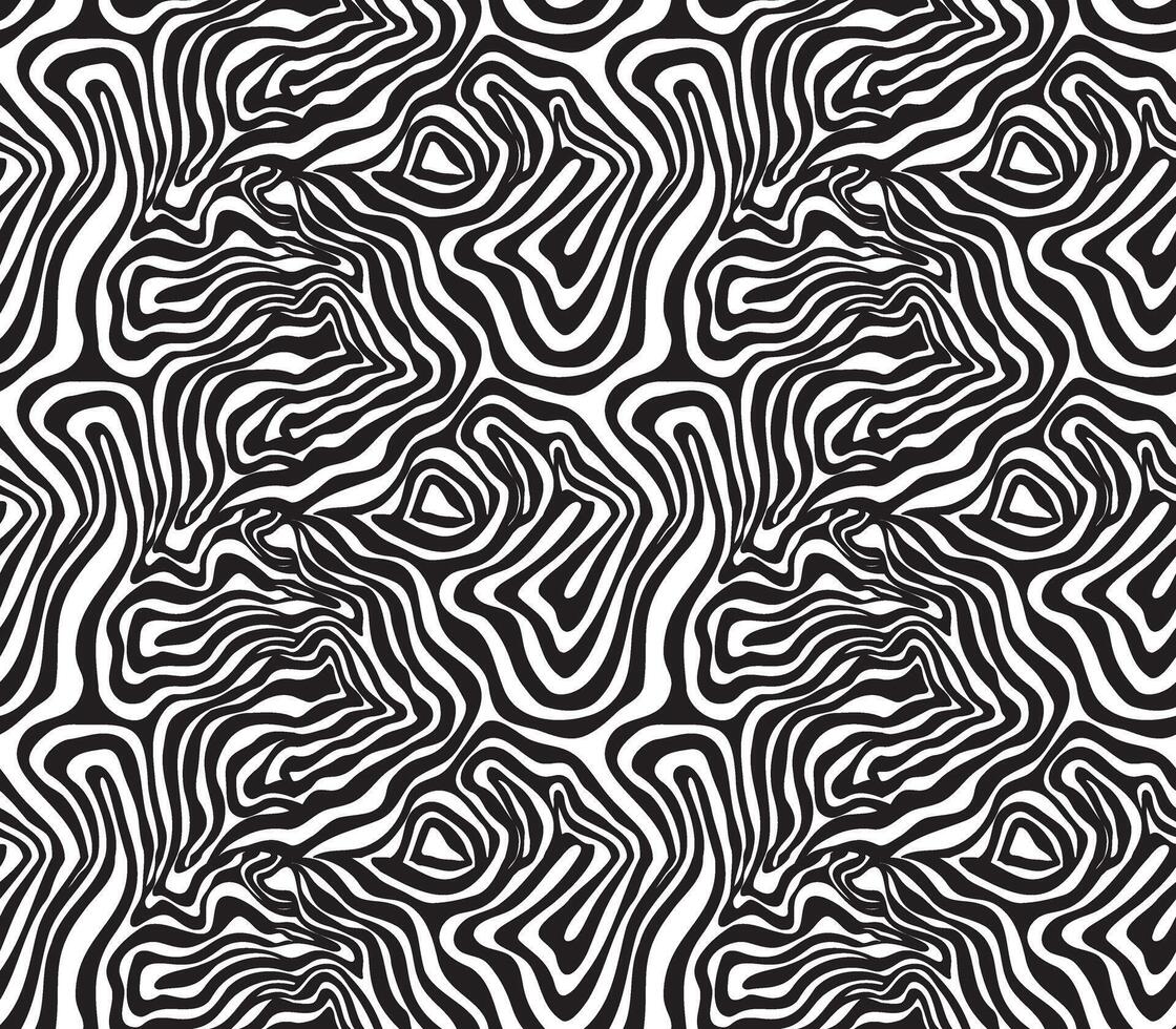 Abstract black and white pattern of wavy lines forming organic shapes and textures, creating a dynamic visual flow. Pro Vector