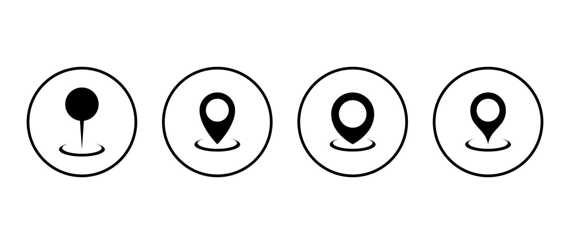 Place marker icon set in circular outline. Map pin, location and gps pointer symbol Pro Vector