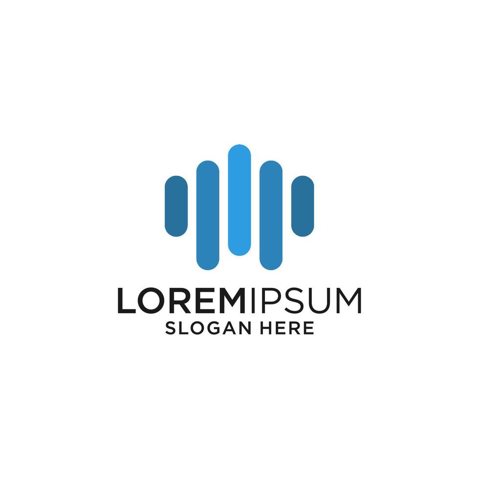 Abstract Geometric Graphic of Vertical Blue Shapes With Text and Decorative Elements on White Background Pro Vector