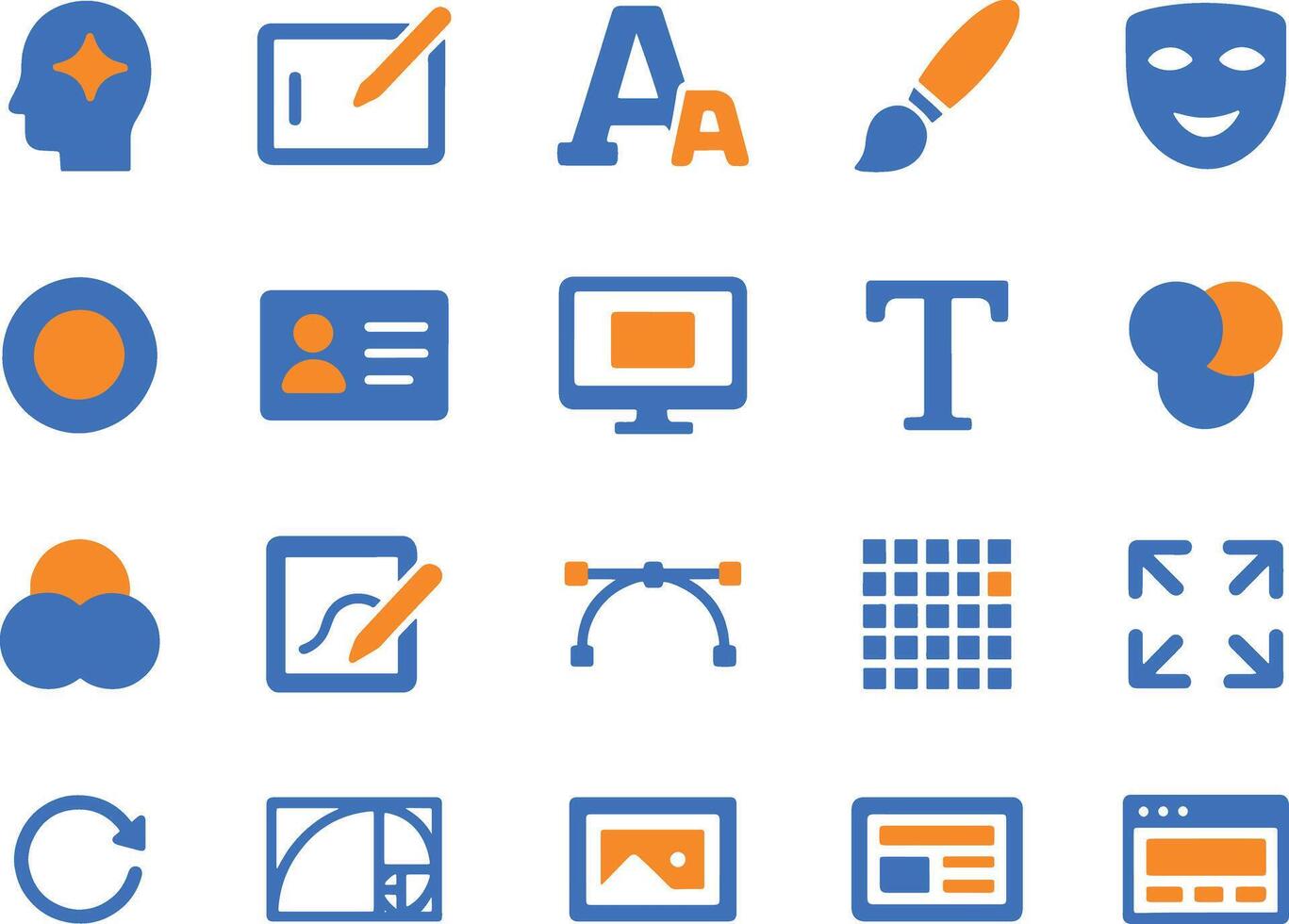 Graphic design elements and creative resources with communication and branding flat icon set for business presentation website Pro Vector
