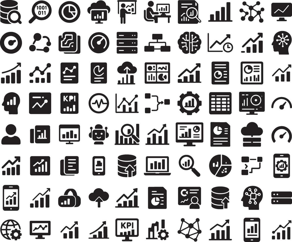 Business data analysis and investment strategy icons set for financial reporting and planning in modern marketing and data science Pro Vector