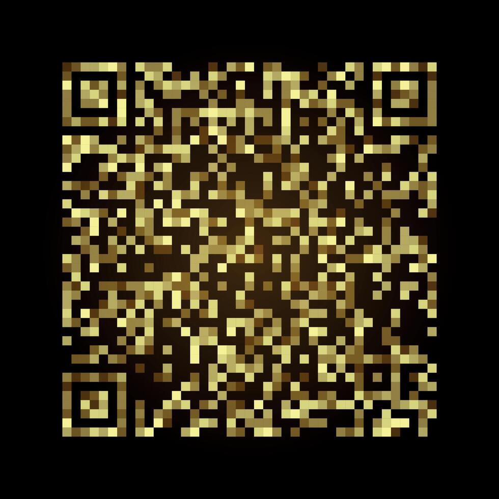 Shiny gold pixelated QR code on dark glowing background Pro Vector