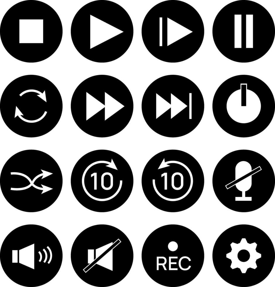 Media control buttons set, play, pause, stop, record, repeat, sound, and shuffle icons for interface, technology, and UI design. illustration Pro Vector