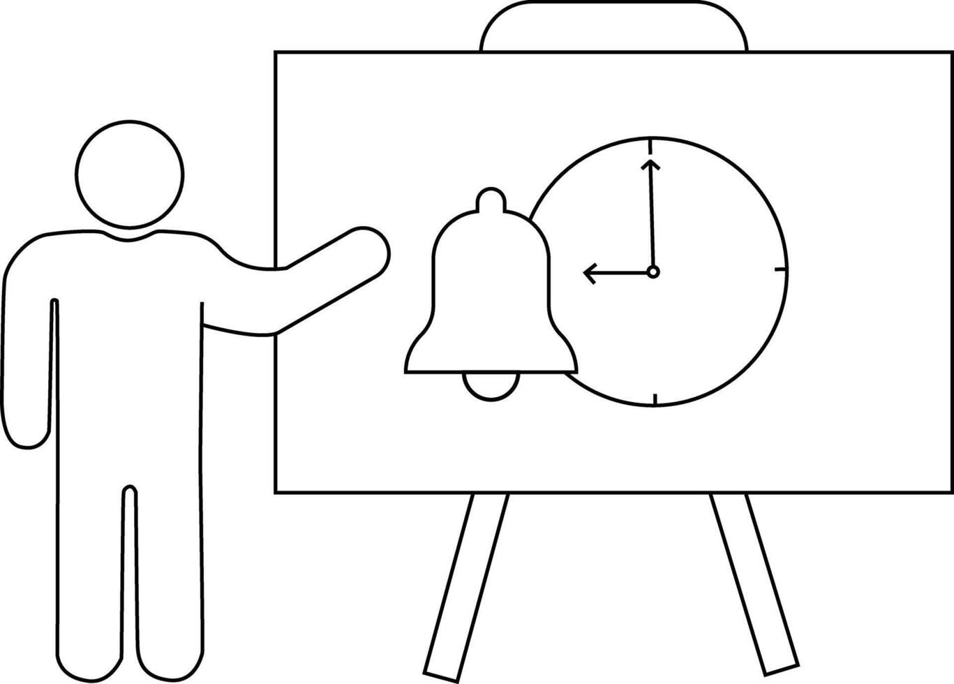 Outline drawing person pointing to easel with bell clock on it Pro Vector