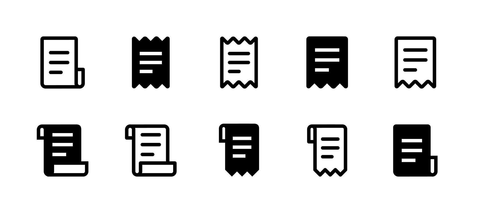 Receipt Icon Set Line and Solid style for Purchase Documentation Pro Vector