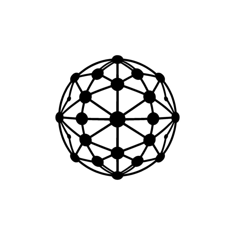 A stylized geometric sphere with interconnected nodes and lines representing a network or connection isolated Pro Vector