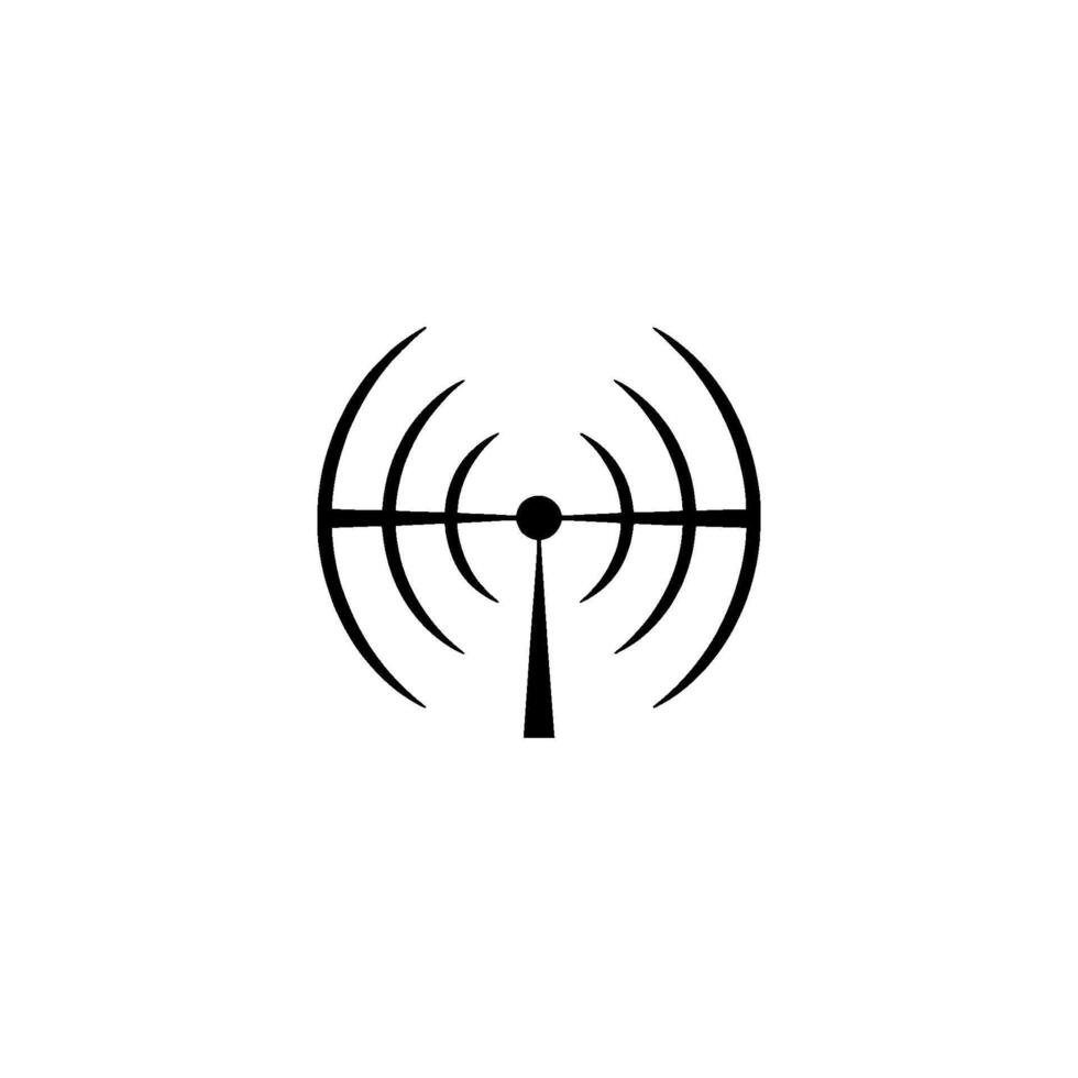 Minimalist silhouette representing a radio tower broadcasting signal waves with concentric circles Pro Vector
