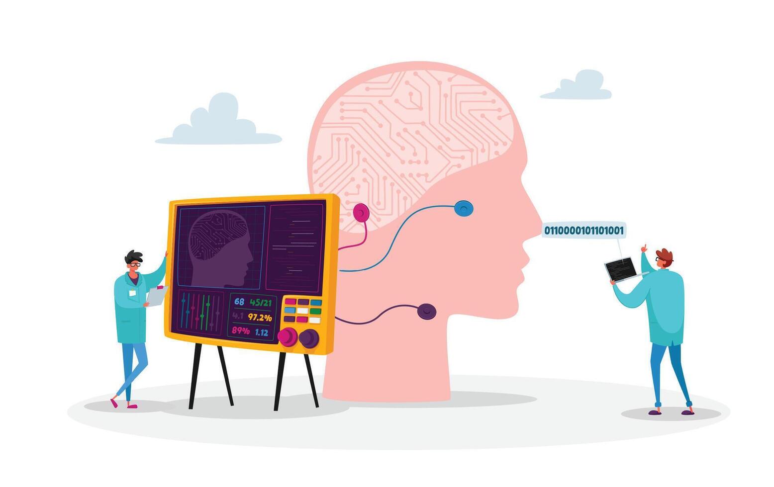 Engineers Create Artificial Intelligence. Futuristic Innovative Technologies, Scientist Make Engineering Calculations Pro Vector