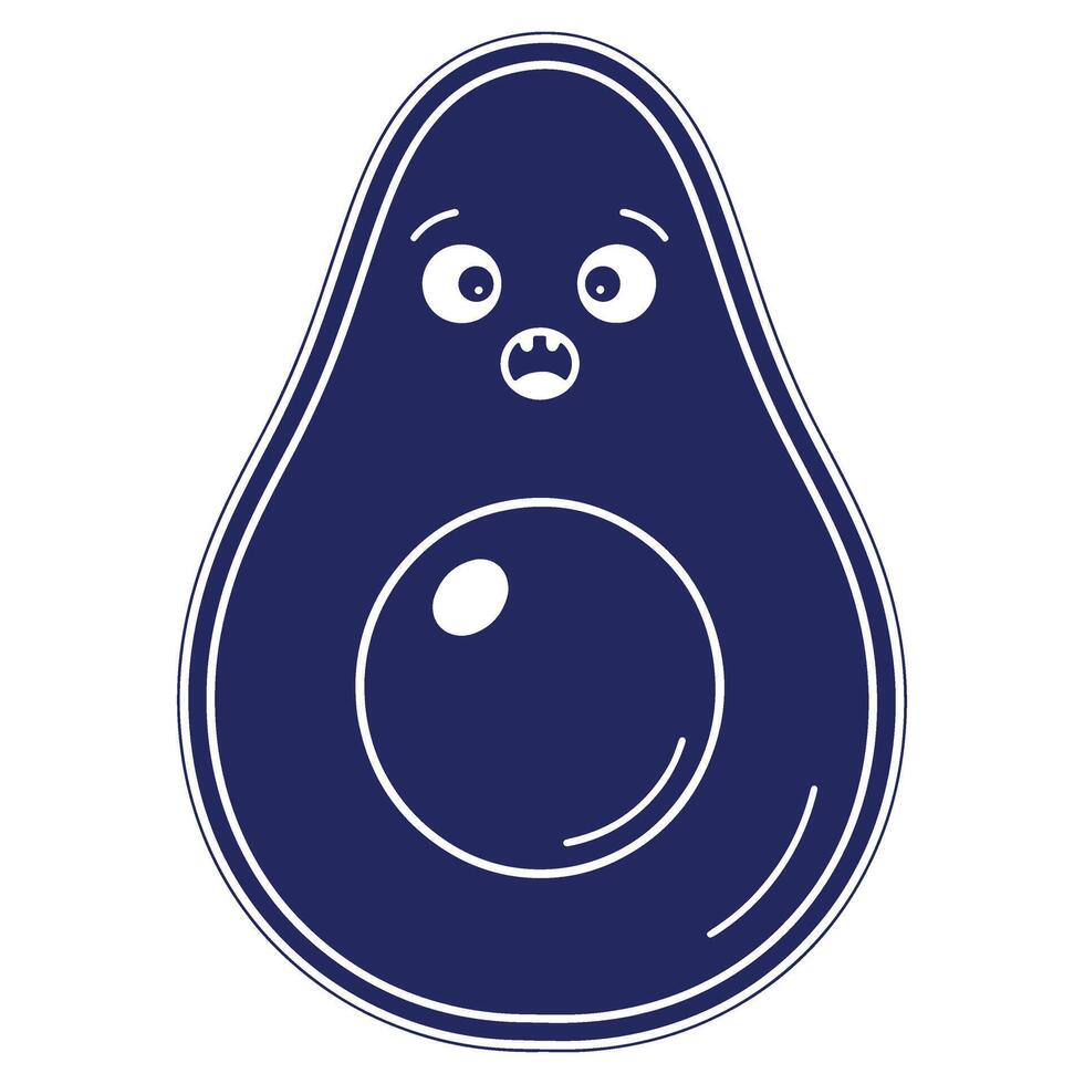 Cartoon Avocado Character with Surprised Expression in Blue Tones Simple Graphic for Design Projects and Educational Materials Pro Vector
