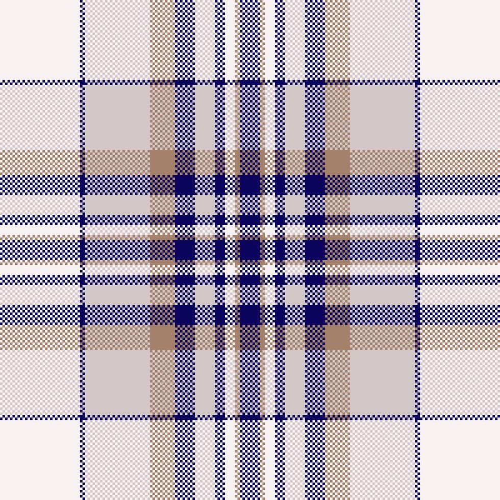 Classic tartan plaid pattern with pixelated detail in neutral and navy tones. Versatile background for textile, apparel, design projects. Pro Vector