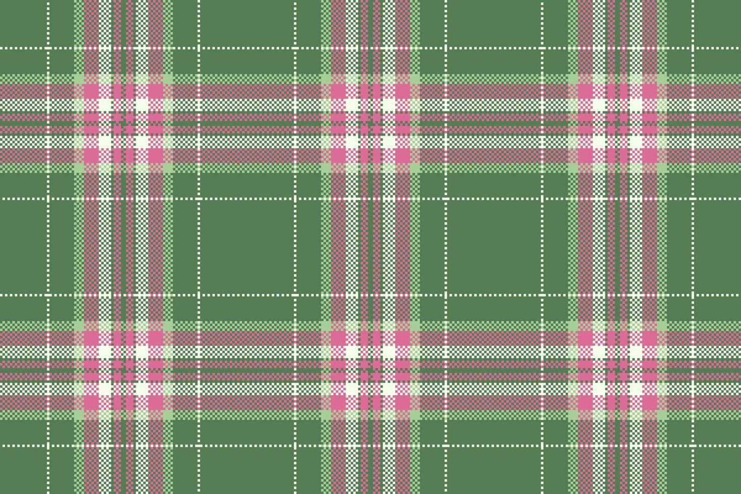 Classic tartan plaid pattern. A seamless, pixelated design in green, pink, and white. Textile texture, apparel, backdrop, or graphic element. Versatile for autumn and winter themes. Pro Vector