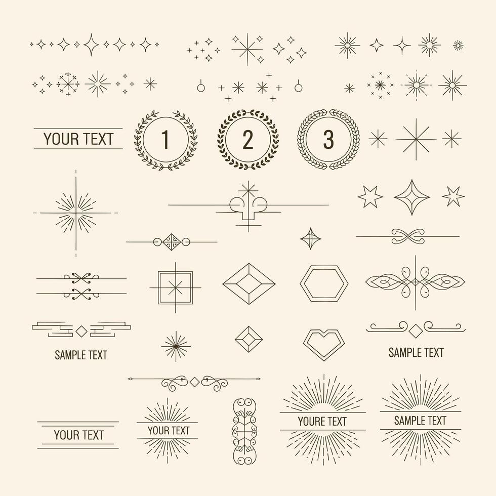 Collection of minimalist design elements, featuring stars, laurels, and geometric shapes, perfect for adding a modern and sophisticated touch isolated on Pro Vector